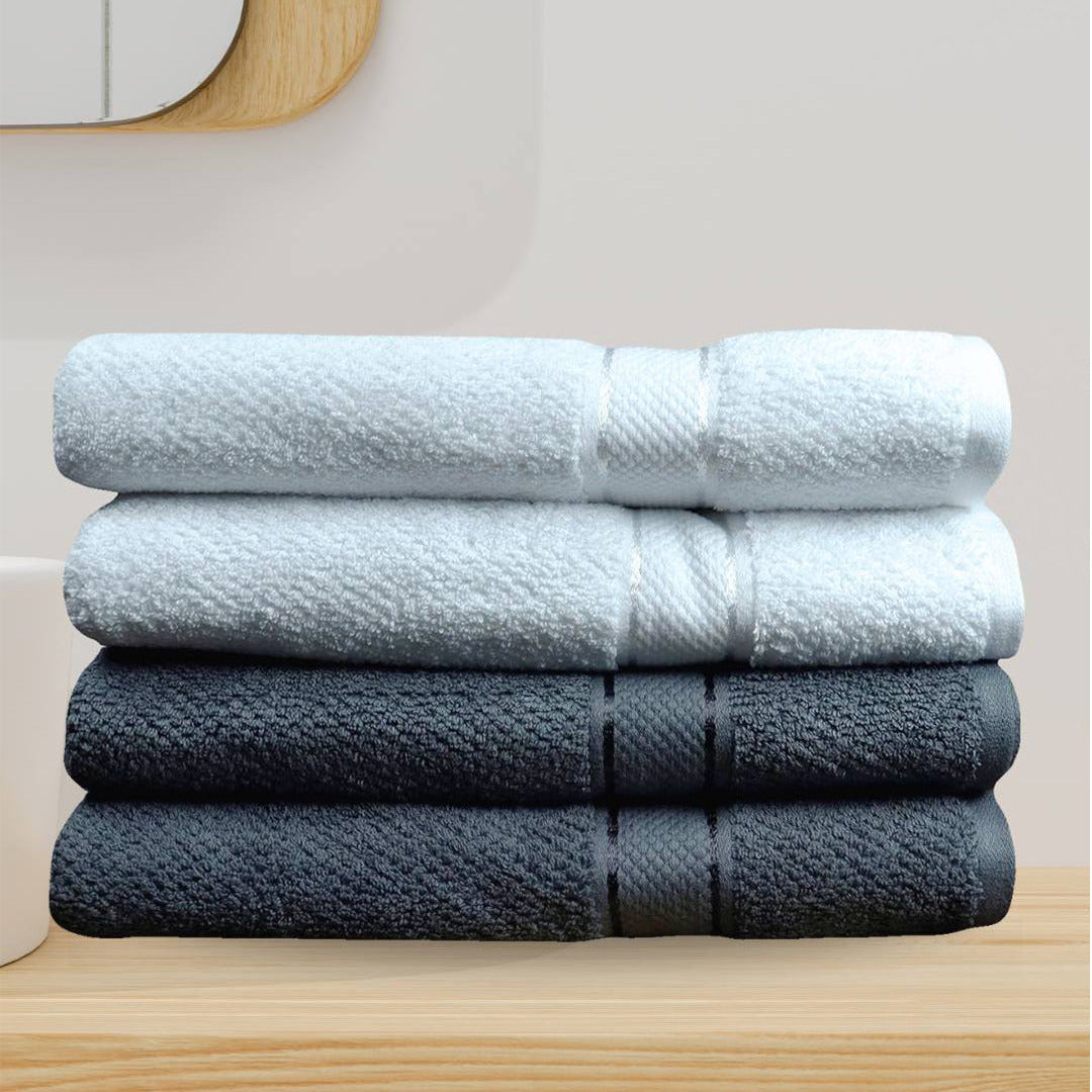 550 GSM 4 Piece Bath Towel Set (2 pcs White, 2 pcs Charcoal)
